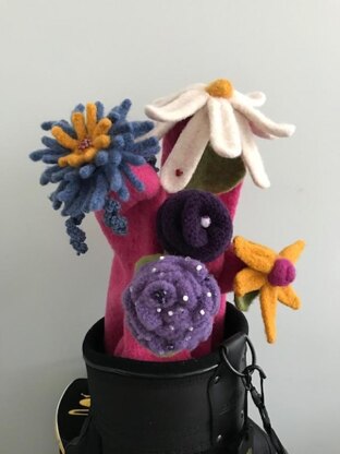 This purchase includes instructions for golf club covers, flowers, and leaves. It is a very comprehensive collection to knit and lightly felt golf club covers for a driver, a 3 wood, a 5 wood, a 7 wood, and a rescue/hybrid golf club. There are patterns for 5 flowers, 3 types of leaves, tendrils, and curly-ques. Some of the flowers and leaves are crocheted. Others are knitted. Also there are instructions for felting. You will be able to create absolutely gorgeous golf club covers. These are definitely unique and a perfect gift for golf enthusiasts.