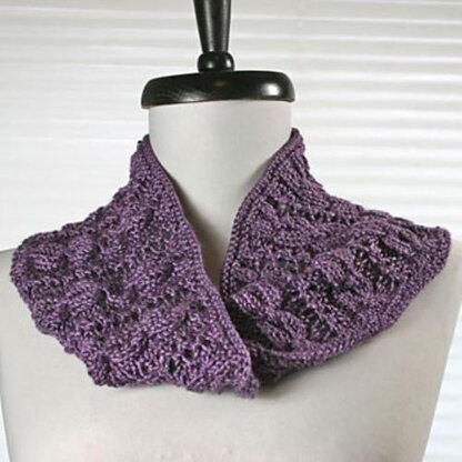 This “fauxbius” features a 360- degree twist in your knitting (a true moebius is only 180 degrees) that doesn’t require any special cast-on but is perfect for holding a special snuggly yarn close to your neck.
