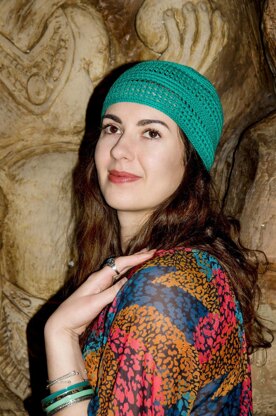 The pattern includes: • Hook and yarn suggestions (original beanie was crochet with 100% cotton, Begonia Yarnart) • Crochet symbols in standard U. S. terms • Gauge • Full written pattern • A stitch diagram (graph pattern) • Sizing guide