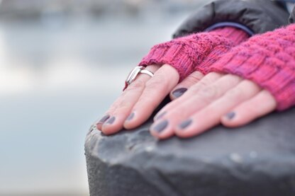 Designed with a long cuff rib, textured basket weave stitch pattern and a little gentle thumb shaping. These fingerless mitts will keep your hands warm when the temperature is a little cooler.