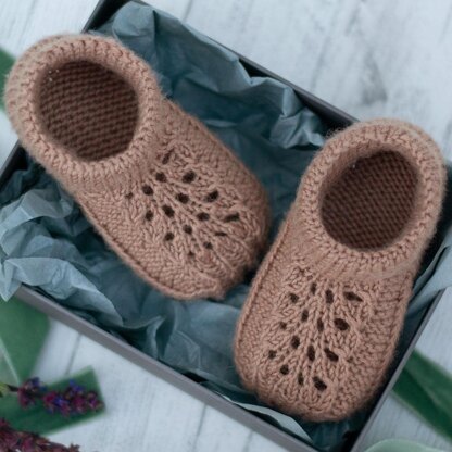 Think dappled sunlight, wildflower meadows, picnic blankets and rosy-cheeked babies. This was the inspiration behind these beautiful stay-on baby shoes. They are a lightweight summer shoe that feels like a sock but fits like a shoe. They slip on easily then the structured, elasticated ankle band keeps them on, while still being flexible and comfy. The Grace baby shoe is a relaxing, speedy knit with minimal finishing, they make a perfect baby gift.