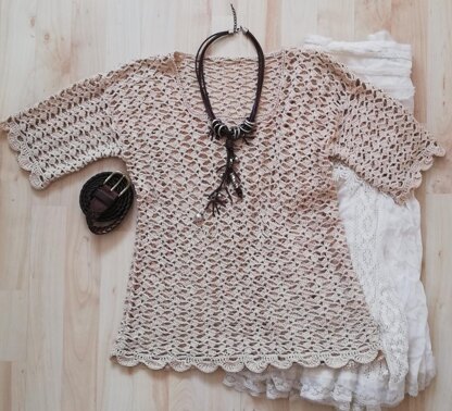 Pattern is given in written format with hand drawn chart. Pattern sizes to fit chest 32"- 40". The length from neck to lower edge is 23"approx. this can be customized to suit your requirements by making it longer. A variation would be to make the top as a tunic by making it longer and leaving side slits.