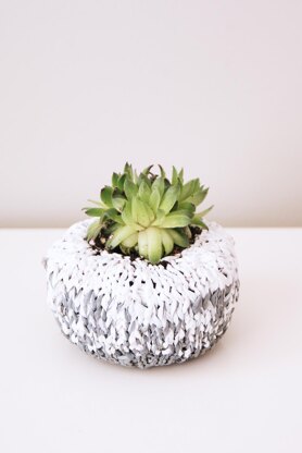 This pattern offers detailed instructions on how to make the plarn needed for the pattern as well as instruction for making three sizes (small-4" diameter x 2" high, medium-6" diameter x 3" high, large-8" diameter x 4" high) of ombre style plant pods. With lots of photos and written details, this pattern is an easy-to-follow how-to. (knit in the round.)