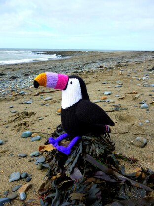 Graham measures approximately 30cm/12in from the tip of his beak to the end of his body and is around 20cm/8in tall when seated. His white bib is knitted using the intarsia method, which sounds scary but really isn’t! If you’ve never tried it before, there are lots of helpful videos and tutorials online. Graham is made using just yarn and toy stuffing so you don’t need any extra materials to create his curved and colourful beak! All the pieces are knitted flat on straight needles.
