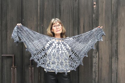 Granite Ridge is a timeless curved triangle shawl with lace down the center and edges. The pattern is written and charted out.