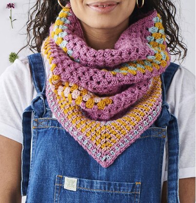 This impactful granny stitch cowl is made to look like a shawl. Brilliant for those who get annoyed with their scarf unravelling all the time! It makes a great stash-buster too.