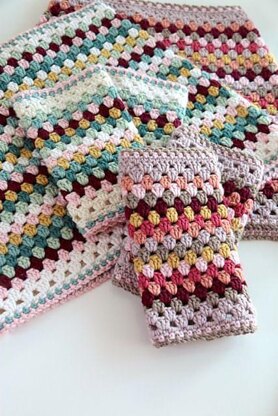 The set is shown in two colour schemes of Debbie Bliss Baby Cashmerino: