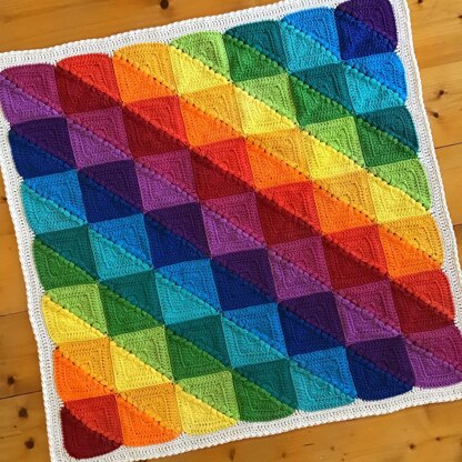 To replicate the rainbow version pictured you will need approx 40gms of each colour and 70gms for the border.