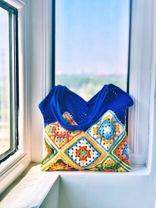 Each granny square is approx. 11.5cm x 11.5cm Finished bag is 33cm wide, 54cm length (with strap)