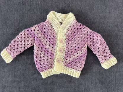 Yoke and cardigan body are worked as one piece. Sleeves are worked into armholes.