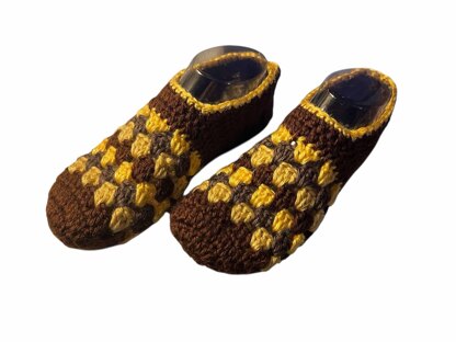 A snug and stylish addition to any indoor ensemble are these multicolor crochet slippers, which match seamlessly with various outfits depending in the colors you choose.