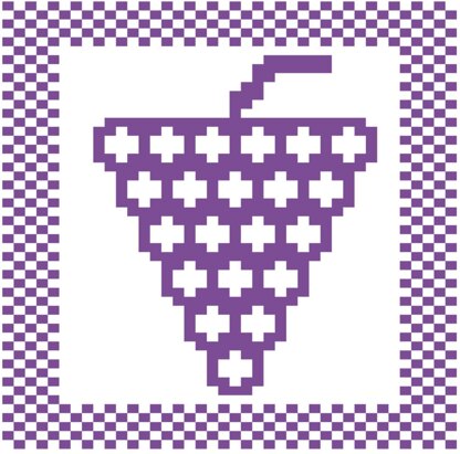 Hand-designed grapes dishcloth pattern. All of my patterns are free-drawn and converted to a pattern on knitting graph paper. I never use knitting pattern creation software to design my patterns. One skein of sugar n cream yarn on size 4 (US) needles is used to create each dishcloth.