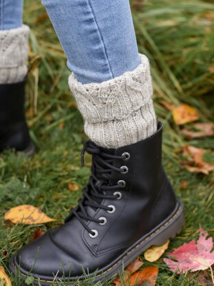 Rich texture with a little openwork sets a distinctive tone for warm legwear in two sizes (S/L). This eye-catching design looks great as a short topper for shoes and boots, while the long option is a stylish accessory with tights or skinny jeans. The ribbed finish may be worked short and flat or long enough to be doubled for extra warmth.
