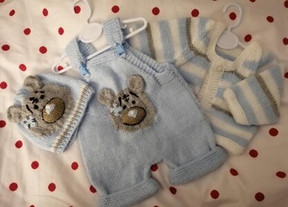 This truely is a gorgeous set and would like lovely on a Boy or a Girl. The face is knitted into the garment and all the instructions are there on the pattern showing step by step what to do. There is some sewing on the garment when it comes to the face.