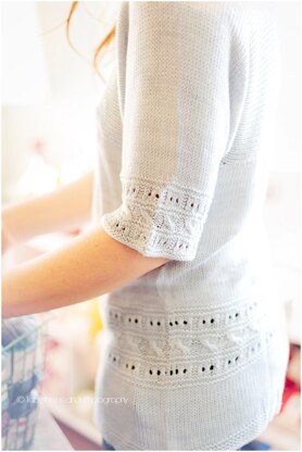 Feminine, stylish, flattering – just a few words that describe “Grecian Elegance”. Cable and eyelet details add elegance to this simple design. Working the yoke sideways adds interest while the 100% sugar cane viscose yarn provides softness and drape.