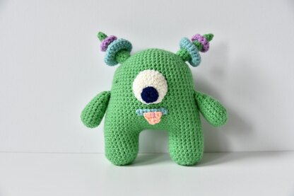 Are you scared of monsters underneath your bed? Well, don't be scared anymore because this little green monster is cute as a button.