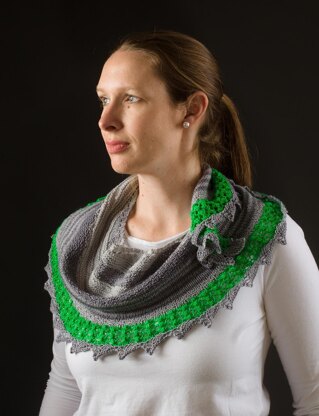 Mini-skein kits are hard to resist – knitters want to gobble them up like candy. But what do you DO with them? This stylish and fun-to-knit shawl aims to solve that problem and specifies options for your choice of 4 to 6 colors. Because the stitch pattern counts are harmonized with the regular increases that make a crescent-shaped shawl, you never have to worry about counting your stitches! Furthermore, you can knit any size shawl you want – each section is based on an approximate percentage system, so you finish your shawl when you run out of yarn.