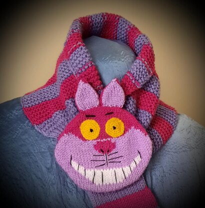 Inspired by the book Alice in Wonderland, the Cheshire Cat is my favourite character and is perfect for a scarf to cheer you up on cold, grey days.
