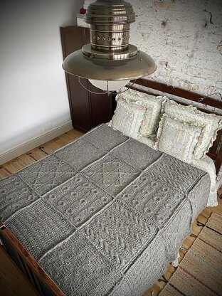 Knitting pieces is so convenient! No matter who you are in your knitting- beginner or advanced- you can do this! If you make an Afghan in a chunky yarn, it knits up quickly. I have knitted my sample using a Universal Yarn Deluxe Chunky. Alternatively, you can use any chunky yarn (any composition you love, recommended weight approx. 100m - 100g). Suggested substitutes: Magnum or Comfort Chunky from King Cole, James C. Brett Lazy Days, Bernat Softee Chunky, Lana Grossa Mille II, Schoeller und Stahl Filzi, Katia Peru or Alaska, Cascade Pacific Chunky or Anthem Chunky, Grundl Wolle Filzwolle Uni, Paintbox Yarns Wool Mix Chunky and similar. You have to know how to work cables and simple stitches as knit, purl, make one and knit two stitches together. Also, you have to know some basic crochet stitches for joining all squares in one big piece. You can knit your Afghan as big as you wish.