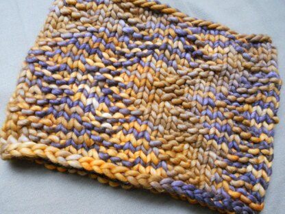GSZ Cowl is a simple cowl knit in soft, super-bulky yarn. It has a simple texture that works well with variegated yarns but doesn't interfere with bold color changes. It's perfect for that single skein of super-bulky yarn.