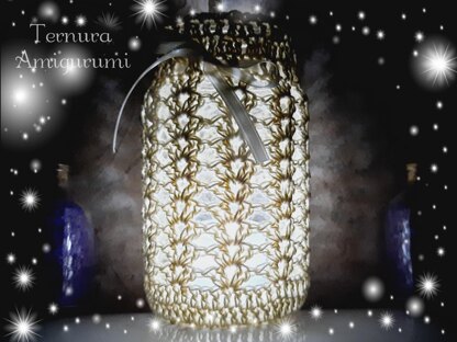 - Benötigte Materialien: Makramee-Thread 15gr ungefähr 1,6 mm Häkelnadel Glas-Container 0,5 mm Band