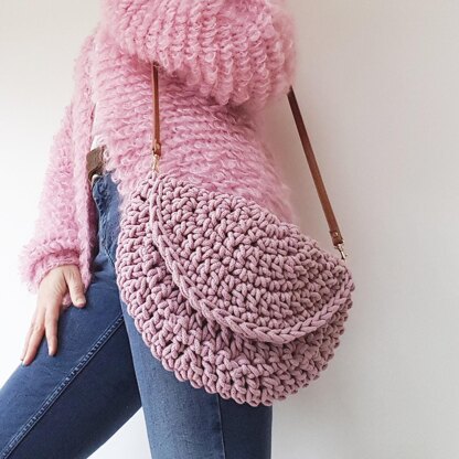 Looking for a cool simple and stylish shoulder bag, the Make.E half moon bag is a best selling crochet pattern. It makes up in one piece so no sewing AT ALL. Super fun to make you'll want to make one in every colour. Perfect size for wallet, keys and phone, and incredibly versatile.