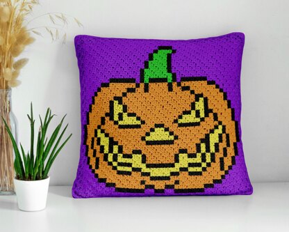 Halloween Cushion All Hallows' Eve Pumpkin Purple Pillow Crochet Pattern Mini-C2C