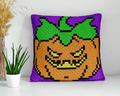 Halloween Cushion Devil Scary Smile Graph Pumpkin Purple Pillow Mini-C2C Pattern