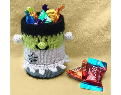 This gorgeous Halloween Frankenstein inspired cover is a holder for anything you like! It covers a tin can and can hold craft materials, pencils, cutlery and more.