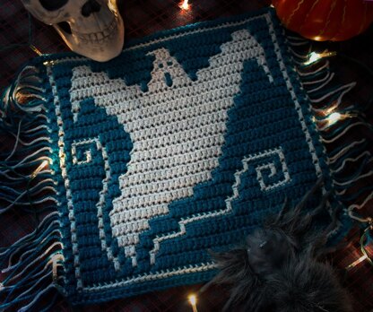 You will need 2 colors of yarn - one for the background and one for the ghost. You could also use variegated yarn for the background, or use 2-3 colors of yarn to create a striped or gradient background.