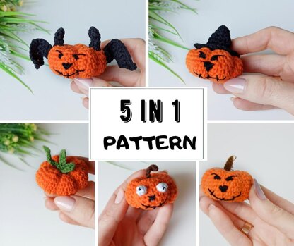 With this Halloween pumpkin crochet pattern you can make 5 different decorated toys. Also you can combine decorations and create your very own pumpkin.