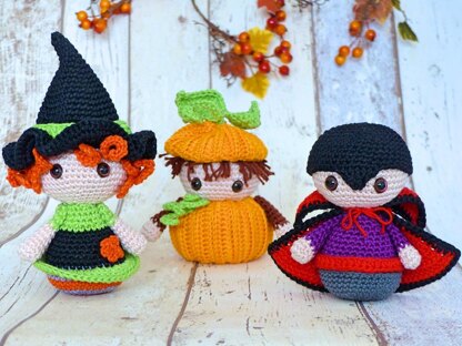 Halloween-Trio: Witch, Pumpkin & Vampire