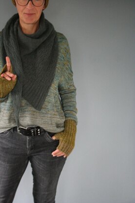 Amounts: Fingering held double 30/35/40g each strand/color, total 60/70/80g The sample is worked with Positive Ease Pure Merino, col. Greyhound, Cutting Edges and Intenso.