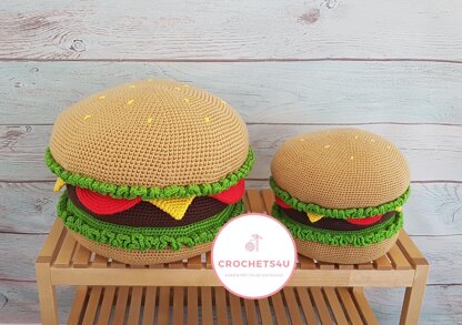 With this pattern you can crochet a unique hamburger shaped pillow.