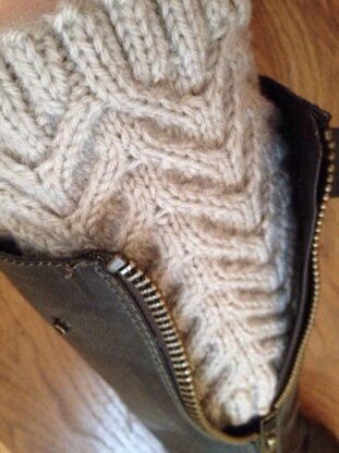 These cabled boot cuffs are knit flat, joined at the edges, and seamed up the sides for a versatile accessory that’s super cozy and fashionable. The “stag horn” pattern is very easy to follow and creates a ton of texture and visual interest.
