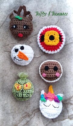 These guys are just… Hangin’ A-Round, waiting for YOU! Super fast, fun and festive :) You get instructions for all 6 characters, intended as ornaments, but they also make adorable package toppers, zipper pulls, and even appliques! Whip some up for teacher gifts, too! Pattern includes~ Snowman Gingerbread Head Reindeer Santa Belly Unicorn and even that grumpy green guy! Grab your scrap yarns, because these are perfect to use up your leftovers!