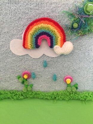 This is a very easy to follow knitting pattern for my cute hanging rainbow. You require a few extras to make this , such as felt and card and 3 beads to use inside the raindrops. Easy pattern to follow.