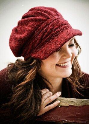 Pattern Notes: Band worked flat. The hat sts are picked up from the band thenworked in the round, with increases to create the flop then decreases to create the crown shaping. The bill is worked in short rows. To keep the bill shaped, use a small peice of craft foam inserted into the pocket of the bill. Craft foam is plyable and washable!