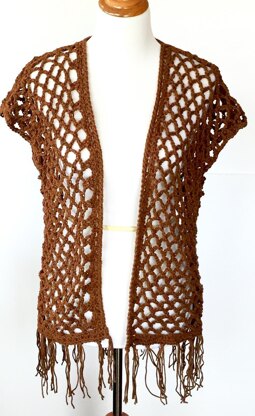This crochet pattern for the Hannah's Cardigan is a perfect open stitch cardigan sweater pattern to crochet for the summer or fall. With or without fringe - this comfortable bohemian style cardigan looks great with skirts, jeans, or dresses. A simple way to add a little fun to your outfit!