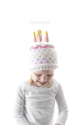 The Happiest Birthday Cake Hat knitting pattern is the cutest birthday hat ever. This adorable baby hat pattern comes with instructions to knit a frosted birthday cake hat with pink frosting swags, white icing and colorful rainbow sprinkles. And then it's finished with cute knit candles on top! You can knit this adorable hat in any of four sizes and make as many candles as you need for your birthday child! This hat is knit in the round, the candles are knit flat and the hat requires basic knowledge of fair isle or stranded knitting techniques.
