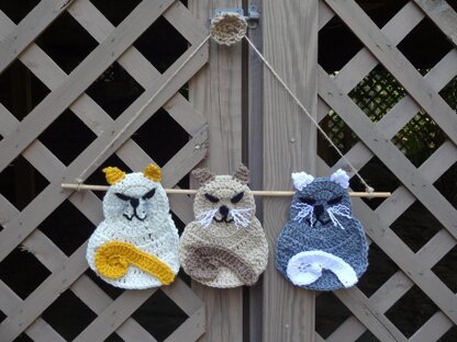These adorable kitties are fun to crochet and make a charming wall hanging or applique. They work up quickly with very little yarn so a few skeins will go a long way. Create them in any colors you choose to match any décor or taste. Make one for yourself and several as gifts for all the cat lovers in your life! Each measure about 7.5” tall (not including ears) and 6.25” across.