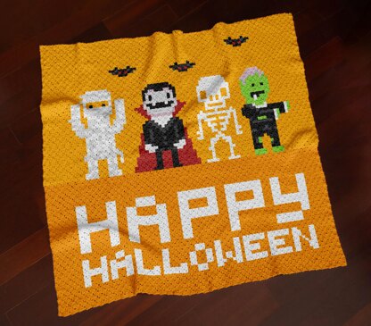 Happy Halloween Blanket C2C Spooky Throw Mummy Afghan Dracula Crib CROCHET PATTERN