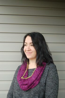 Hardly is a dose of colour and softness in the form of an infinity scarf - wear it for style points. Hardly is cast-on provisionally and worked flat, then the beginning and ending are grafted with Kitchener stitch and the i-cord edges are applied in a contrast colour.
