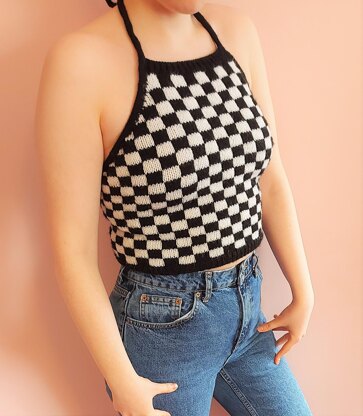 The Harmon Halter was inspired by two things: my love for motorsport and Queen’s gambit! The iconic checkerboard design represents both the chequered flag of a race and a chess board. The Harmon Halter is quick knit, and I managed to make some of the smaller sizes in a weekend!