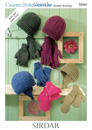 Hat and Gloves in Sirdar Country Style DK and Wash 'n' Wear Double Crepe DK - 5840 - Downloadable PDF