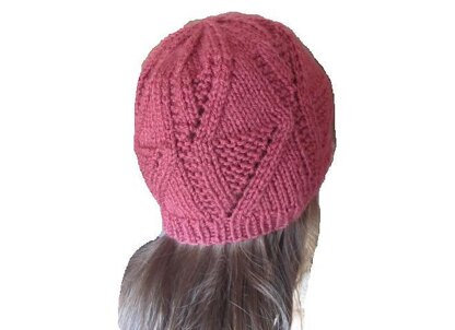 This hat is made in a beautiful, eye-catching geometrical stitch. Knitted in the round on circular needles and does not have a seam.