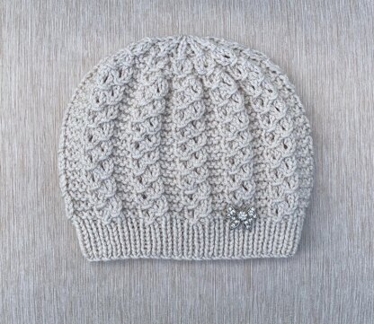 Hat "Ivanna" features a very beautiful stitch with mock eyelet cables. The pattern icludes pictures illustrating the technique used for the cables. It's very easy and fun to knit!