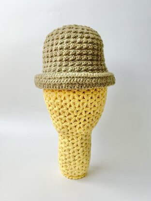 This hat is made with a textured stitch. It is designed to be worn with some floating space on the top of head. The pattern was made with 2 strands of wool 100% DK weight yarn with 5mm crochet hook. That gives great hardness to keep the hat shape. Also, it stretches to fit your head.