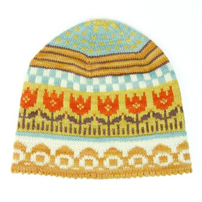 Tulips, grafic patterns and and exciting colours make a hat that you will love not only for one cold season! The out-of-the-ordinary design is fun to knit and brings just the right amount of colour to your winter wardrobe.