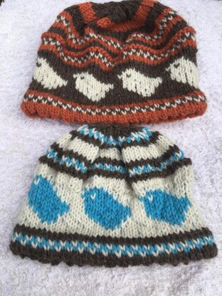 The hat has full written instructions and a chart for the bird motif. This hat can be knitted for a newborn baby up to a 3 year old. You will need one ball of DK yarn in each of your chosen colours.